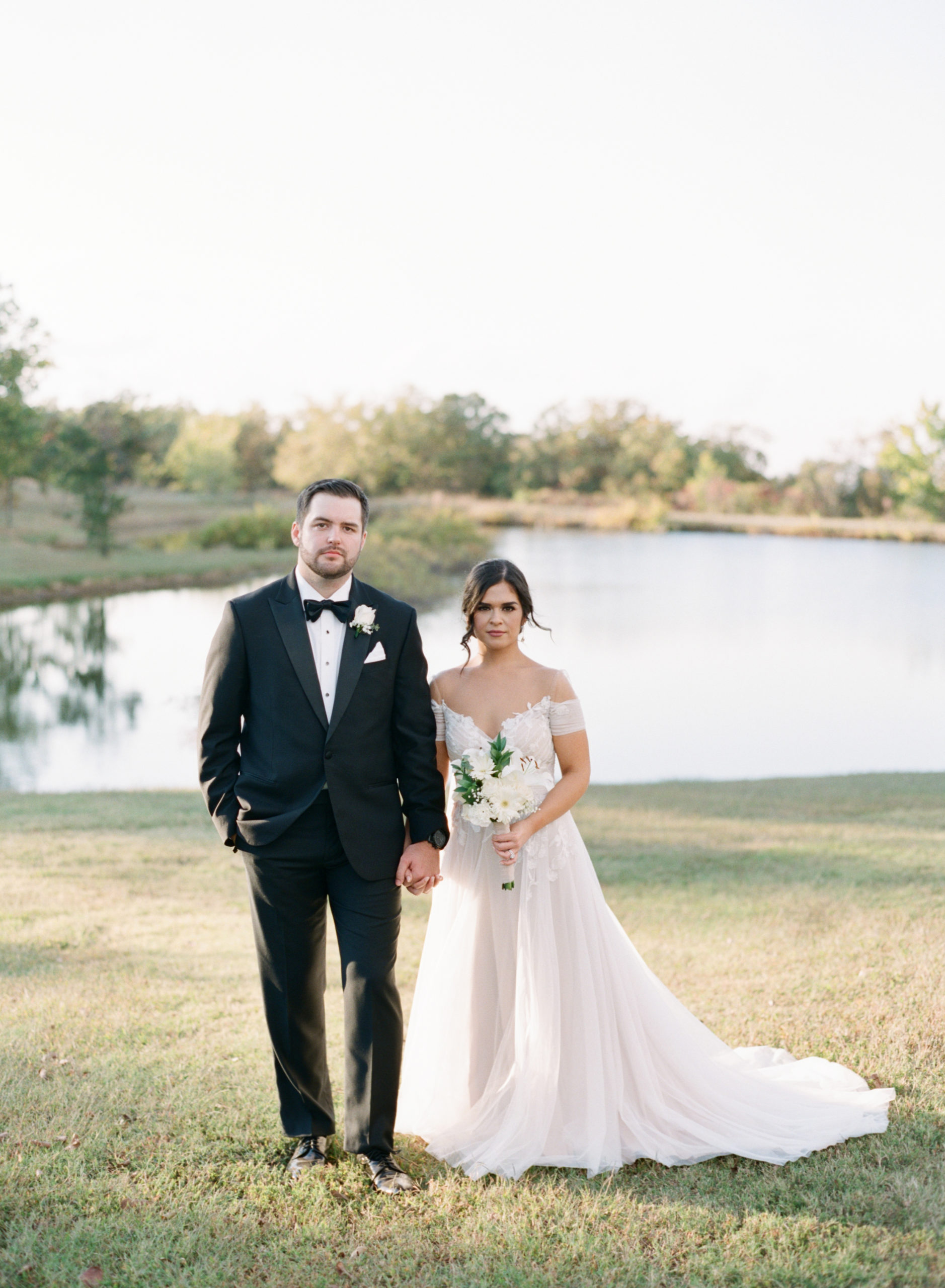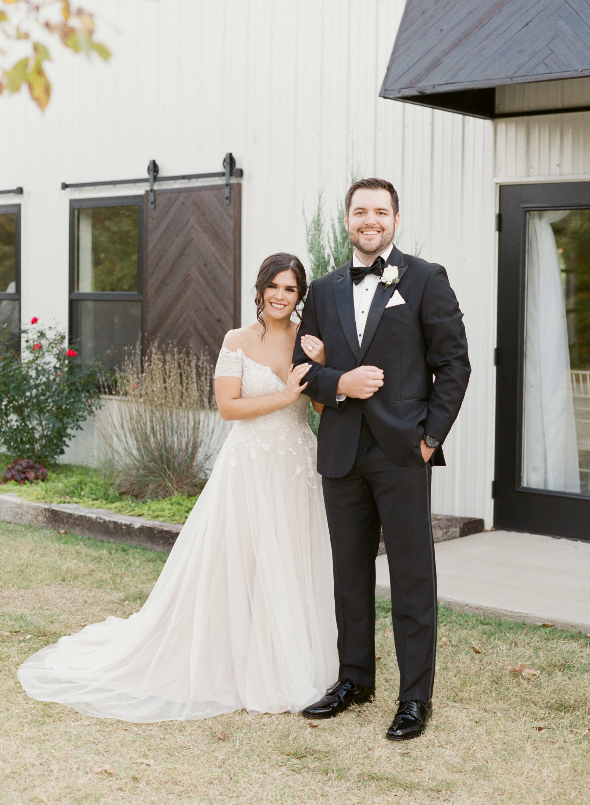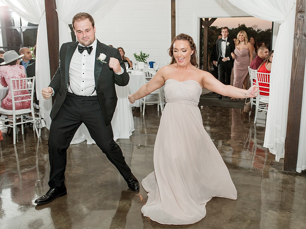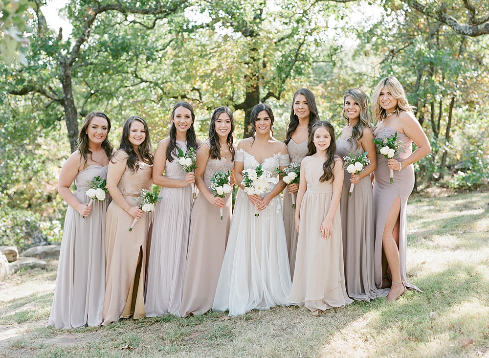 Dream Point Ranch weddings in Bixby, Oklahoma lend themselves to soft tones and a classic white barn style. It is a chic venue with a touch of rustic vibes. Kyle was a freshman at OSU when he met Karen through a mutual friend that happened to be Kyle’s roommate. They didn’t start dating for another year and a half back in 2013, but sure enough they made it work! They enjoy spending time outdoors, binge watching Netflix, and trying new restaurants in town. I had the pleasure of photographing their proposal and meeting them for the first time at Woodward Park. After meeting them in person, I knew I would be thrilled to photograph their wedding, so when they reached out to me a few moths later I was over the moon! They are both incredibly kind and have the softest smiles that instantly put you at ease! They are gentle spirited, but bring out the goofiness in one another which was fun to see both during the proposal and at their wedding. We will be doing a one year anniversary session as well, which we are all excited for! Their wedding colors were the classic black, white, and blush with the touch of greenery on every table. Their planner Bethany Faber guided them through their entire planning process and I know I’m not the only one who thought the day went perfectly! Fun Fact: Kyle AND Karen had ACL surgery…a perfect match for each other! Their Dream Point Ranch wedding had beautiful fall weather, and we even got to spend more time after the ceremony, during sunset, to take photos. I never pass up on the chance to take sunset photos – they are stunning.